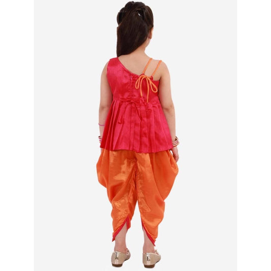 Girls Stylish One Side Sleveless Pattern Kurti Sharara Set with Tie Dye Contrast Dupatta