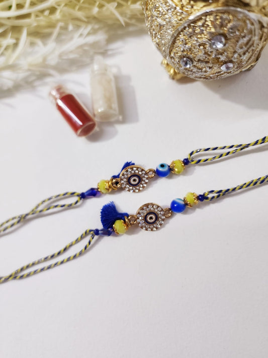 HOK Beautiful Evil Eye Blue-Yellow Rakhi