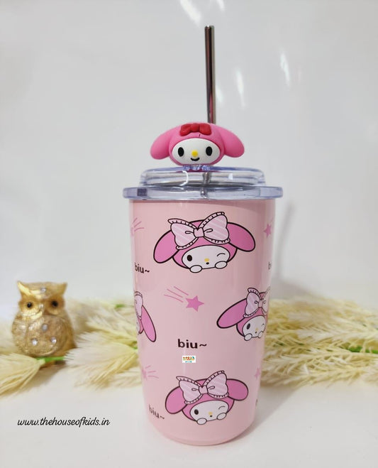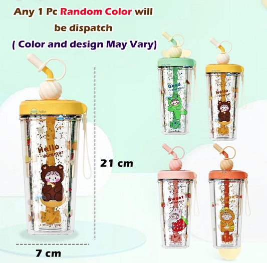 HOK Cute Cartoon Theme Glitter Tumbler with Straw