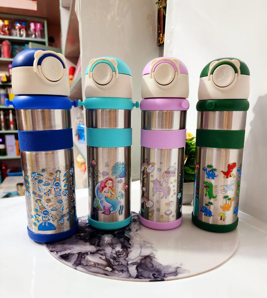 HOK Cute Printed Stainless Steel Bottle with Straw Lid- Vacuum Insulated 500ml