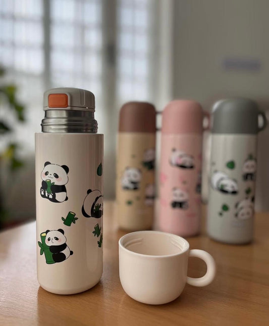 HOK 500ml Cute Panda Stainless Steel Thermos Bottle with Cup- Vacuum Insulated