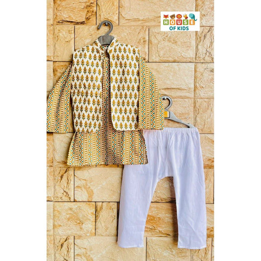 Boys Cotton Floral Kurta Pajama with Jacket Set