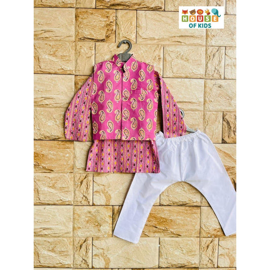 Boys Cotton Kurta Pajama Jacket Set