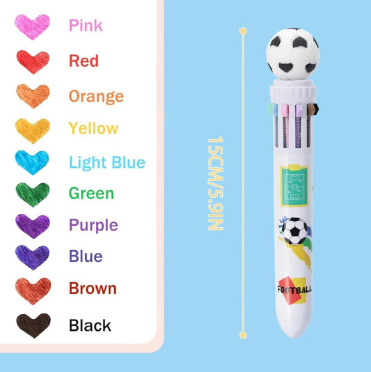 HOK Multicolor Ballpoint Pen 0.5mm|10-in-1 Colored Retractable World Cup Soccer Ballpoint Pen- Pack of 4pcs