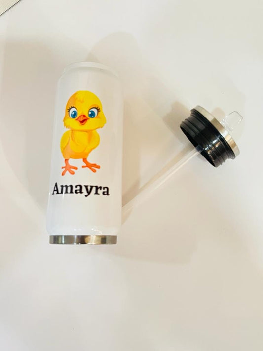 Customised Steel Can with Straw - scope of name with any cartoon/picture
