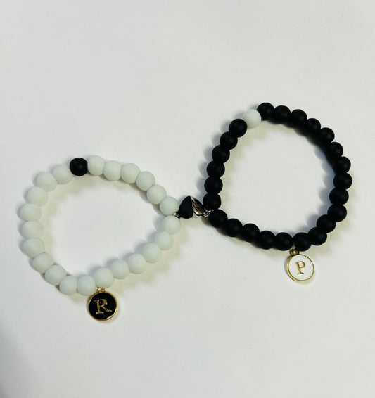 Magnetic Couple Bracelet Pair with Initial - Enter Initials in Textbox below Size Selection for Personalisation - Set of 2