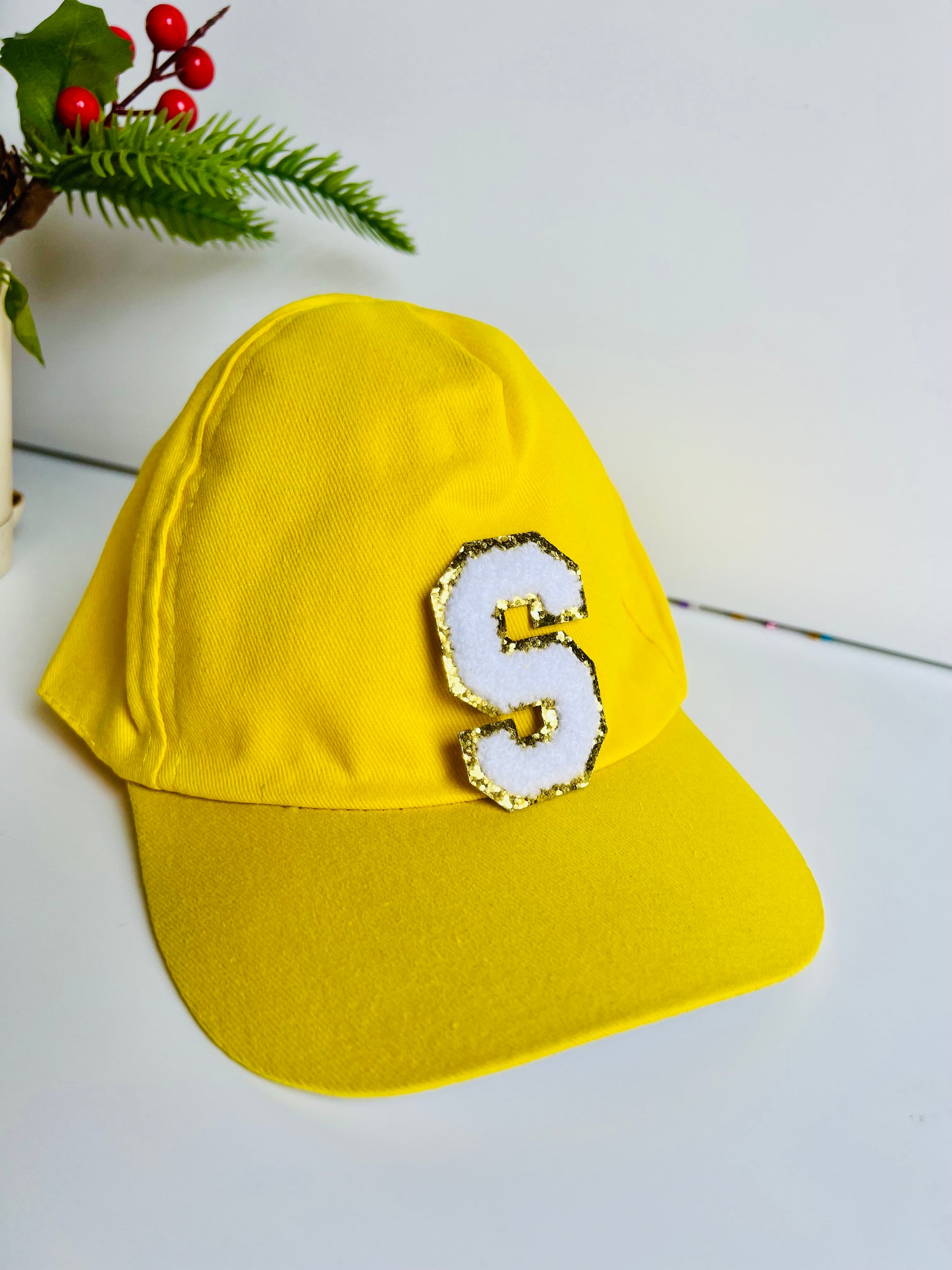 HOK Personalised Cap with Initial Gold Chenille Patches Letter Alphabet