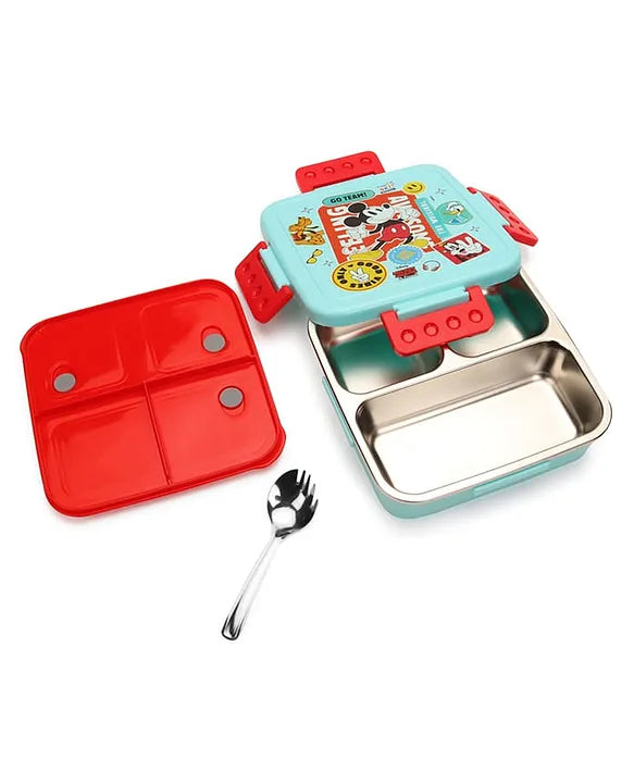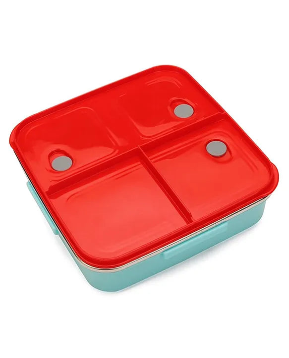 HOK Square Meal Steel Inner Insulated 3 Partition Bento Lunch Box 600 ml